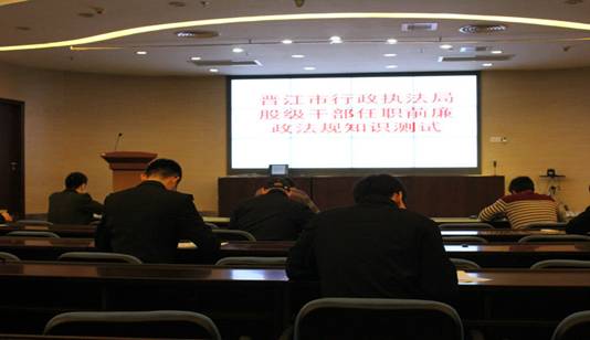图为4月10日,晋江市行政执法局举行股级干部任职前廉政法规知识测试。