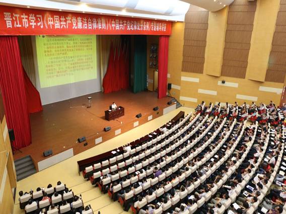 图为:晋江市学习《准则》《条例》专题辅导讲座现场