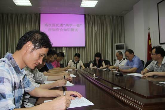 为推进“两学一做”,促进纪检监察干部走前头、作表率,日前,洛江区纪委开展全区纪检监察系统“两学一做”应知应会知识测试。测试内容包括党章、《准则》、《条例》、习近平同志系列讲话等重要学习内容,测试采取闭卷形式,分场次进行。图为:洛江区纪委机关“两学一做”知识测试现场