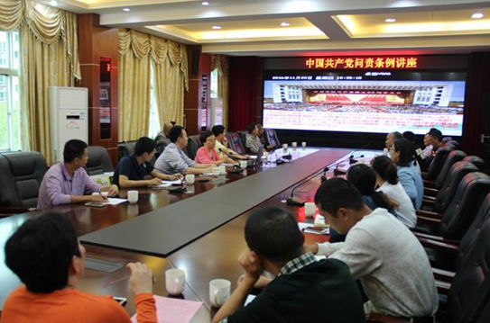 宣讲围绕《问责条例》出台的背景、目的和意义,与《廉洁自律准则》、《纪律处分条例》不同侧重点,阐述了《问责条例》七个特点和四个核心内容,并就如何贯彻执行《问责条例》作深入的讲解,帮助局属单位党组织和党员领导干部深刻领会其中的实质和要领,切实增强管党治党政治意识和责任意识,并在局属单位中掀起了学习贯彻的热潮。图为:市水利局纪检监察干部在市北渠管理处宣讲《中国共产党问责条例》现场