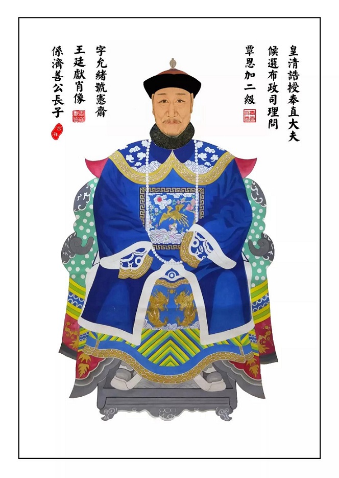 王廷献岀身于经商世家,因捐纳钱粮,被朝廷授予布政司理问,诰封奉直大夫,协助布政使处理日常刑名司狱事务。王廷献为人正直,持家有方,乐于助人,热心公益,尊师重教,爱惜人才,具有报国爱乡的情怀,在力所能及的范围之内,报效国家,回馈乡民,相当难能可贵。