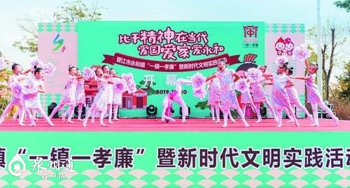 11月30日,晋江市永和镇开展“一镇一孝廉”暨新时代文明实践活动。图为永和镇象峰小学学生合唱《中华孝道》。