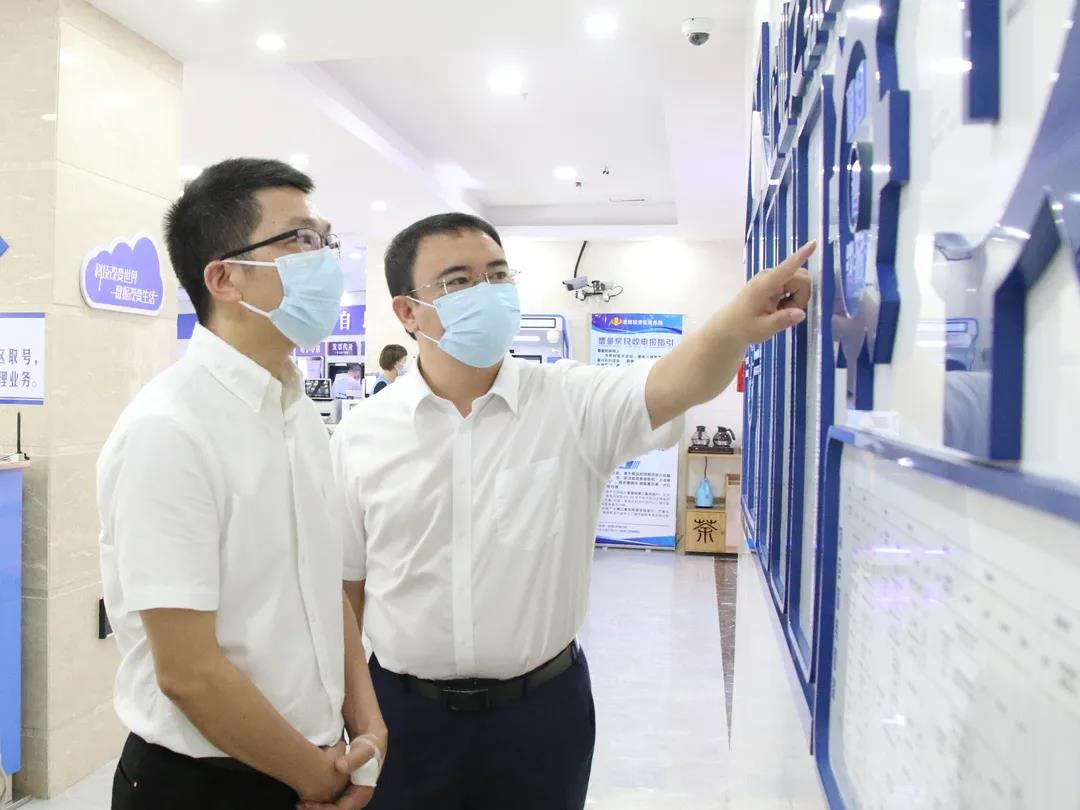 刘刚(左)到泉州台商投资区行政服务中心开展调研,了解窗口服务工作开展情况。(郭钧淼 摄)