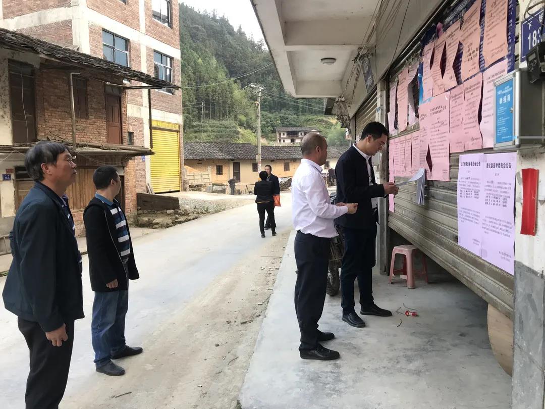 郭顺明(右一)到德化县龙门滩镇督导村级组织换届风气监督工作(蔡翔 摄)