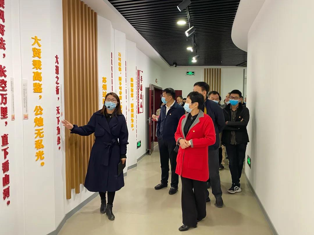 吕春香(前排右一)与驻在单位市委政法委机关党支部党员干部到泉州市机关党建体验馆开展“强党性 扬清风”主题党日活动(肖赣 摄)