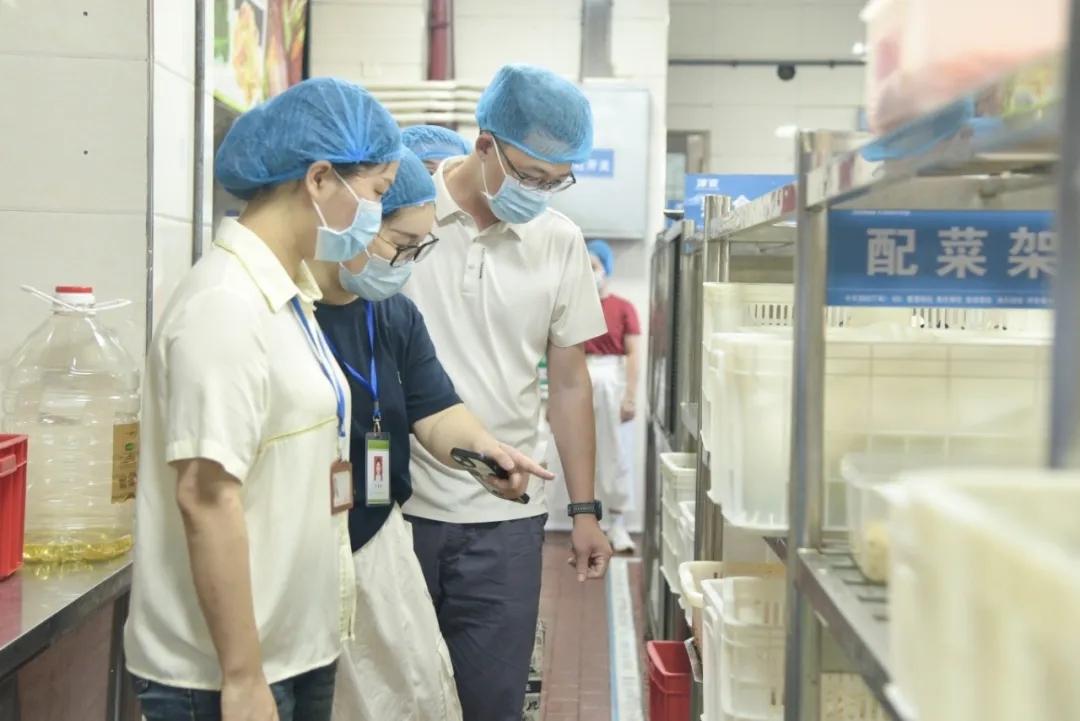 厦门市同安区纪委监委紧盯中小学校园食品安全问题,围绕资金管理、食材采购、食堂承包准入等环节强化监督。图为该区纪检监察干部走访辖区内学校了解食品安全工作落实情况。(朱晨欣 摄)