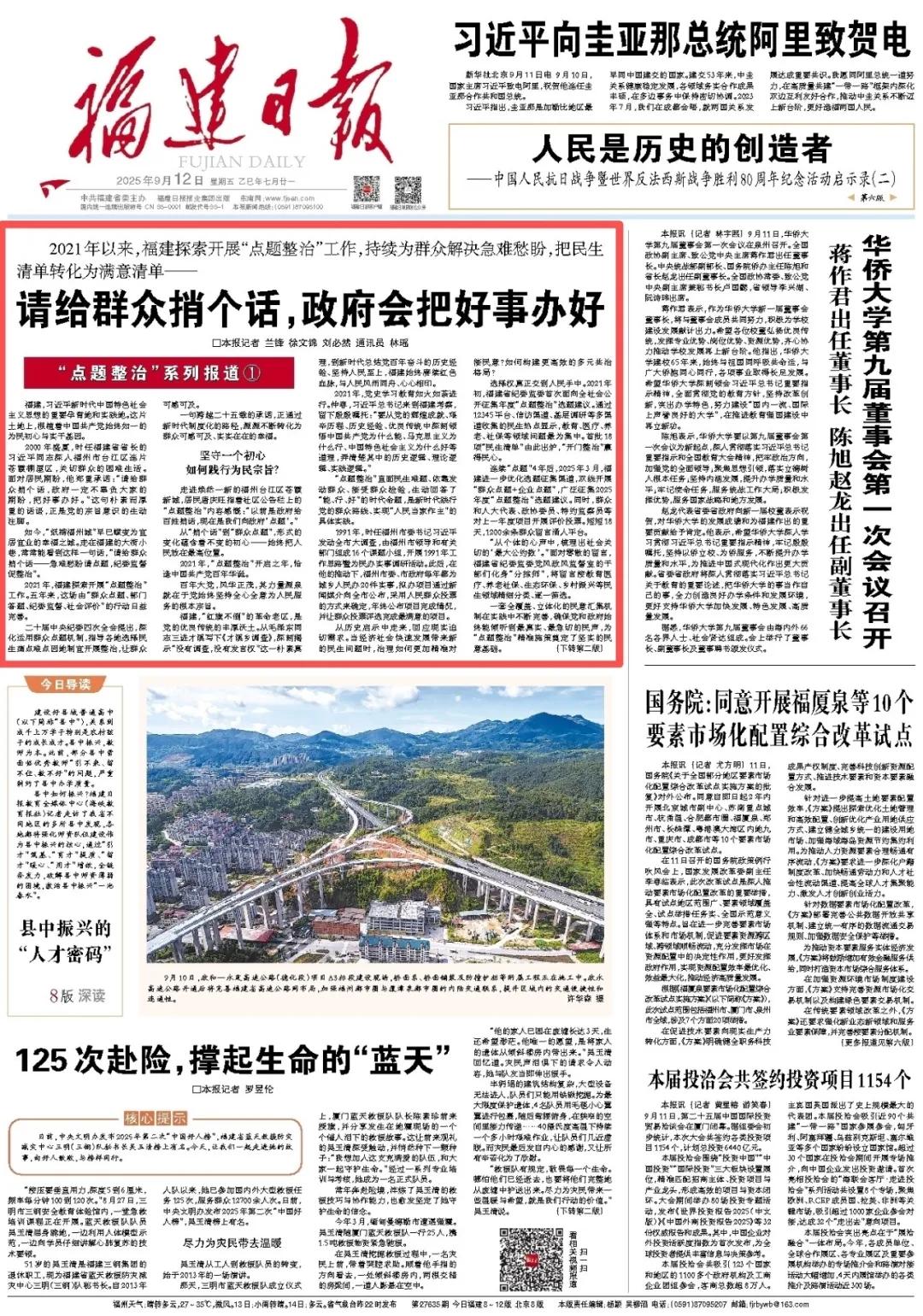 2021年以来,福建探索开展“点题整治”工作,持续为群众解决急难愁盼,把民生清单转化为满意清单。今年是福建开展“点题整治”的第五个年头,《福建日报》将以系列文章深度报道福建探索实践“点题整治”工作的经验做法。