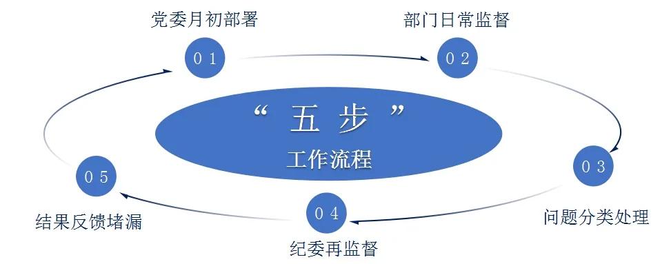拧紧责任链条后,重在抓落实、见实效。该县纪委监委聚焦“重点人”“重点事”,探索“党委月初部署——部门日常监督——问题分类处理——纪委再监督——结果反馈堵漏”五步工作流程,健全定期会商、动态更新、联动督查、问题移送、生态分析、分级谈话等六项制度,促进“四责”贯通联动,实现压力层层传导、责任环环相扣。