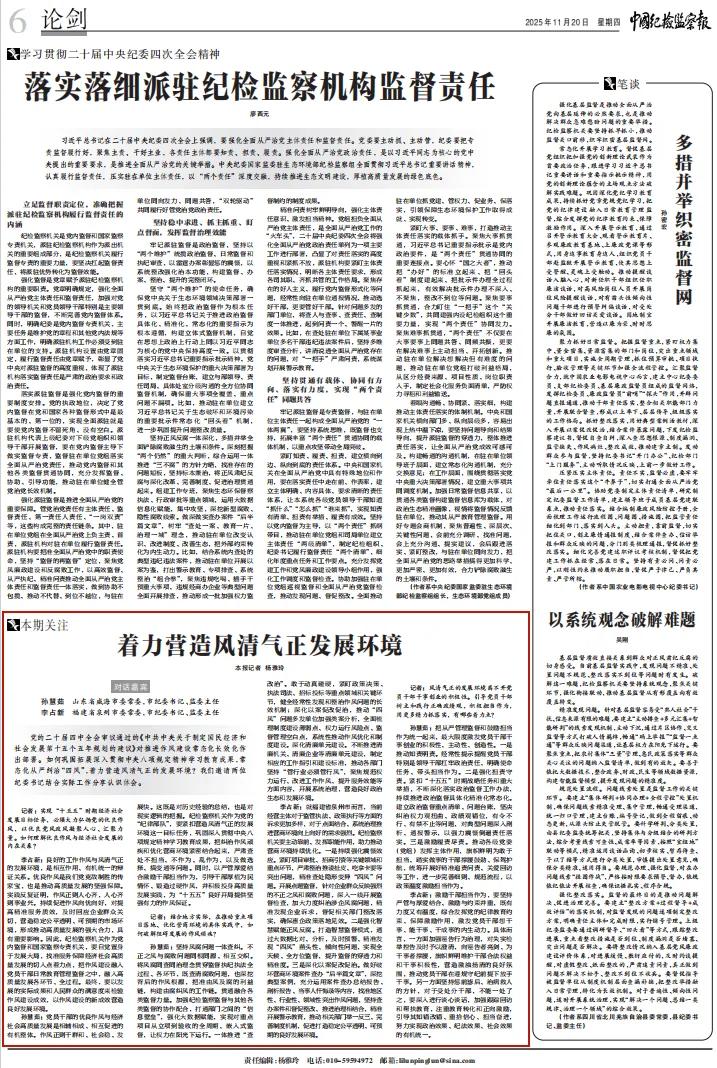 11月20日《中国纪检监察报》刊发访谈文章《着力营造风清气正发展环境》