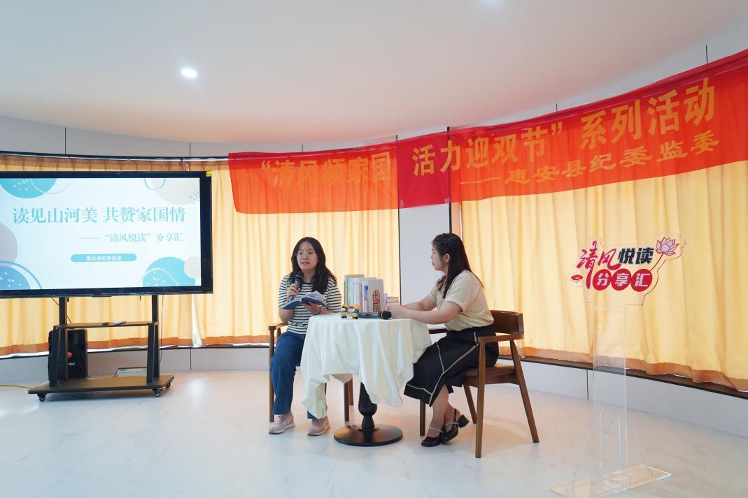 惠安县纪委监委精心打造“清风+”青年纪检监察干部培育品牌,搭建“清风纪语”实务学堂、“清风悦读”分享汇、“清风砺剑”实战营、“清风微镜”视播台等多维平台,推动干部学用转化,在实战一线锻造“多面手”青年干部。图为该县纪委监委组织青年纪检监察干部在“清风悦读”分享汇开展读书分享。(惠安县纪委监委)