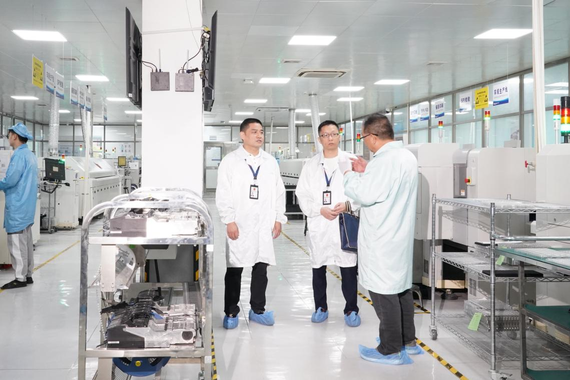 图为丰泽区纪检监察干部下沉走访泉州知创园,向重点企业了解生产经营情况。(黄如友 摄)
