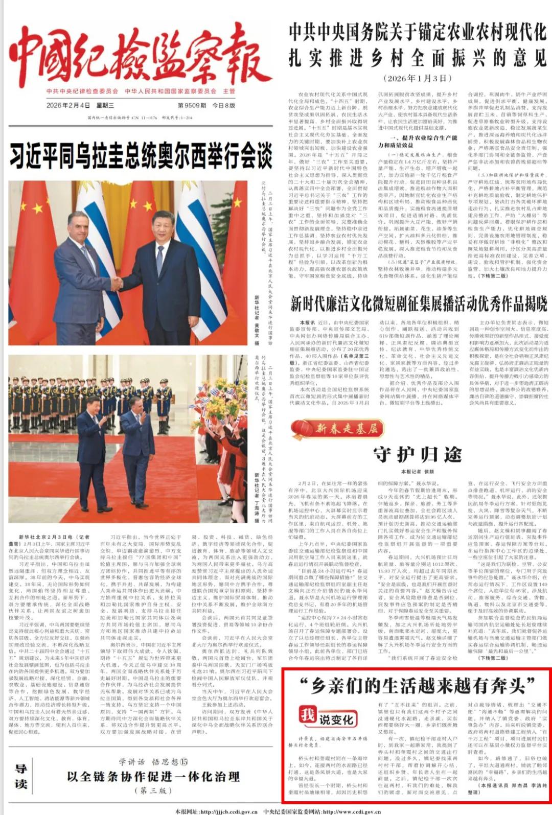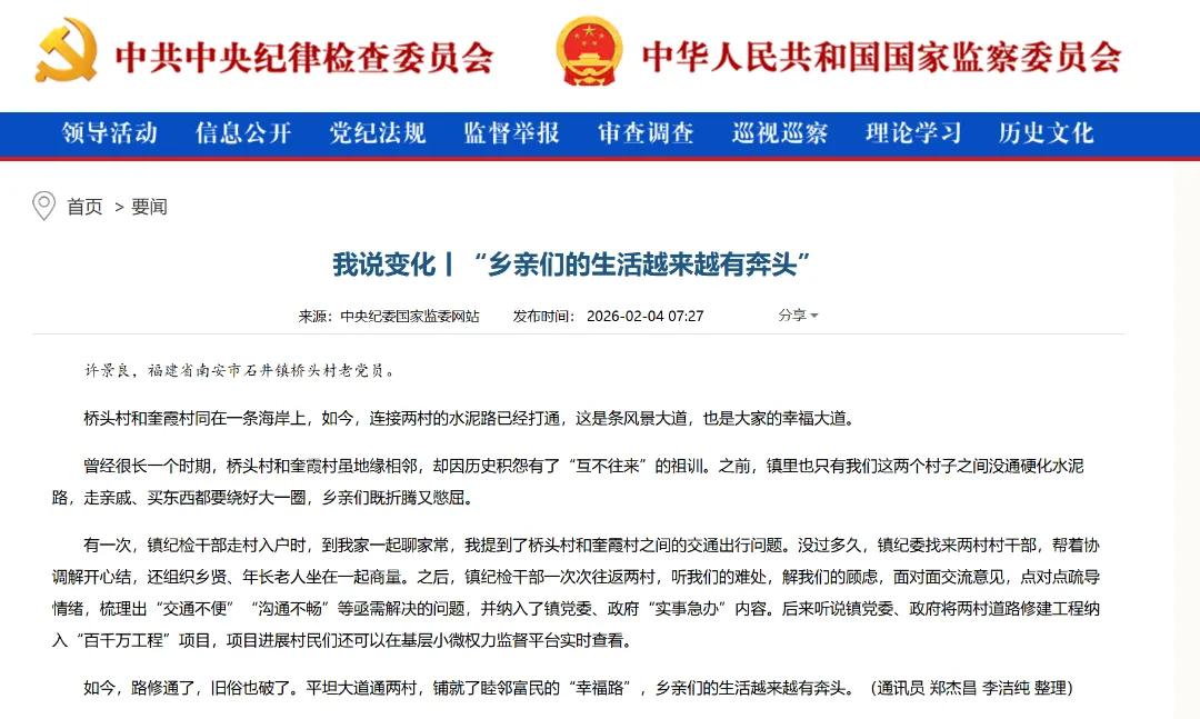 近日中国纪检监察报头版、中央纪委国家监委网站要闻“我说变化”栏目刊文《“乡亲们的生活越来越有奔头”》
