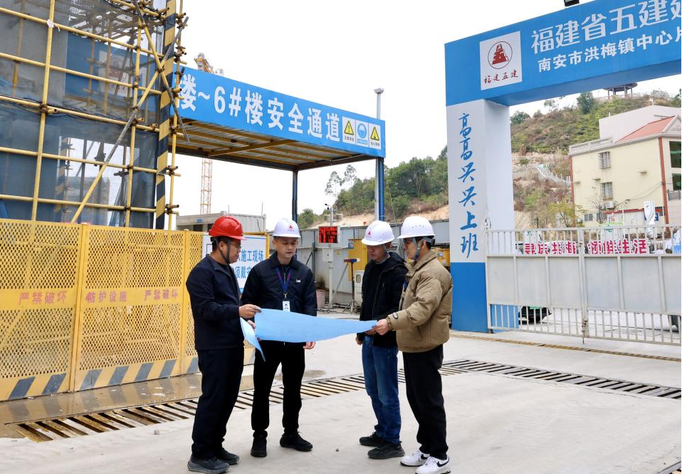 南安市纪委监委持续强化监督职责,紧盯重点项目建设进展、工程质量安全等关键环节,深入重点项目施工现场开展监督检查,全力护航重点项目建设廉洁高效。图为近日,该市洪梅镇纪检监察干部在镇中心片区更新改造项目现场了解有关情况。(南安市纪委监委)